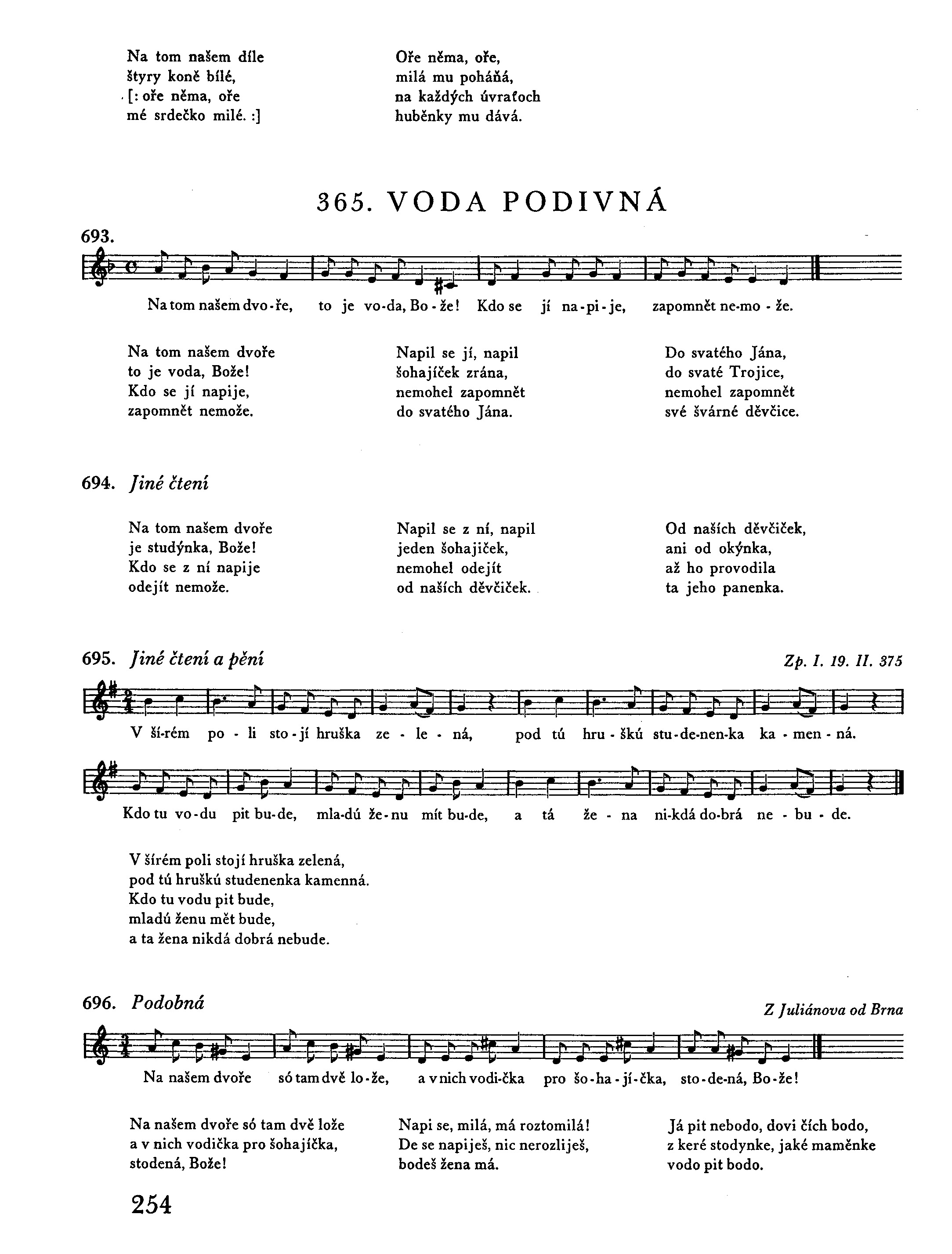 Na tom našem dvoře to je voda, Bože! Kdo se jí napije, zapomnět nemože. Napil se jí, napil šohajíček zrána, nemohel zapomnět do svatého Jána. Do svatého Jána, do svaté Trojice, nemohel zapomnět své švárné děvčice.