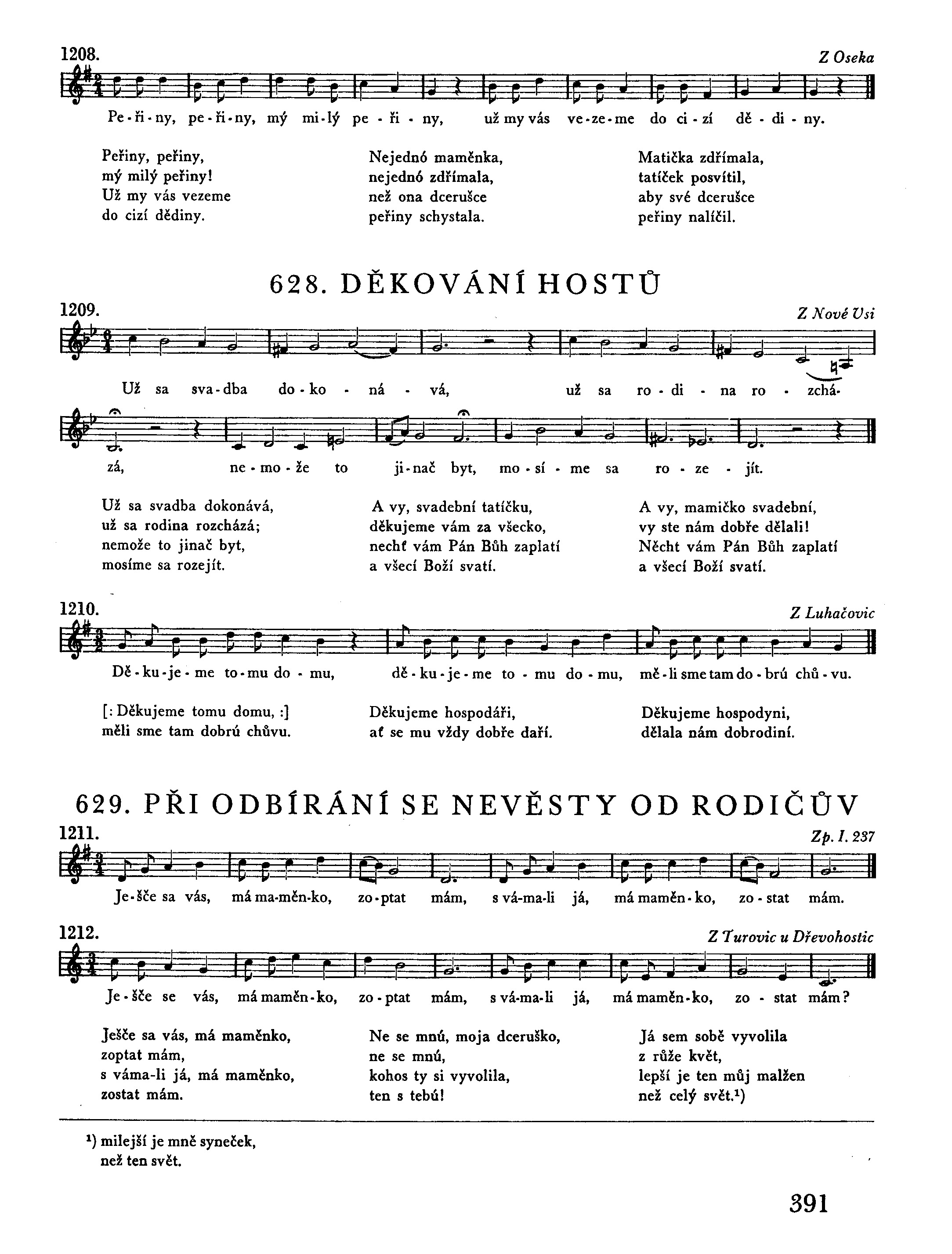 Už sa svadba dokonává, už sa rodina rozcházá; nemože to jinač byt, mosíme sa rozejít. A vy, svadební tatíčku, děkujeme vám za všecko, nechť vám Pán Bůh zaplatí a všecí Boží svatí. A vy, mamičko svadební, vy ste nám dobře dělali! Něcht vám Pán Bůh zaplatí a všecí Boží svatí.