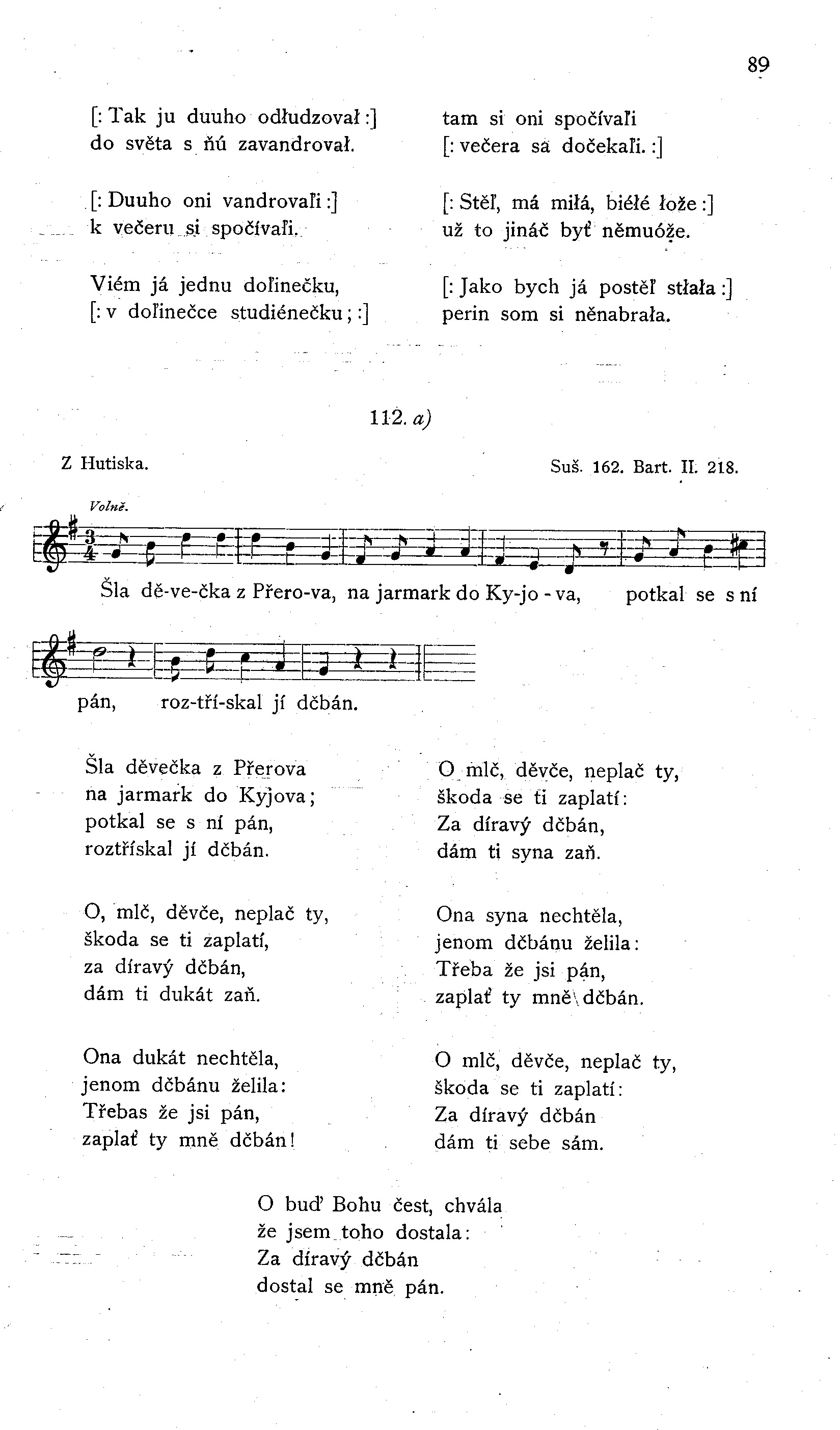 Bartoš 1901 / 0112a | Šla děvečka z Přerova