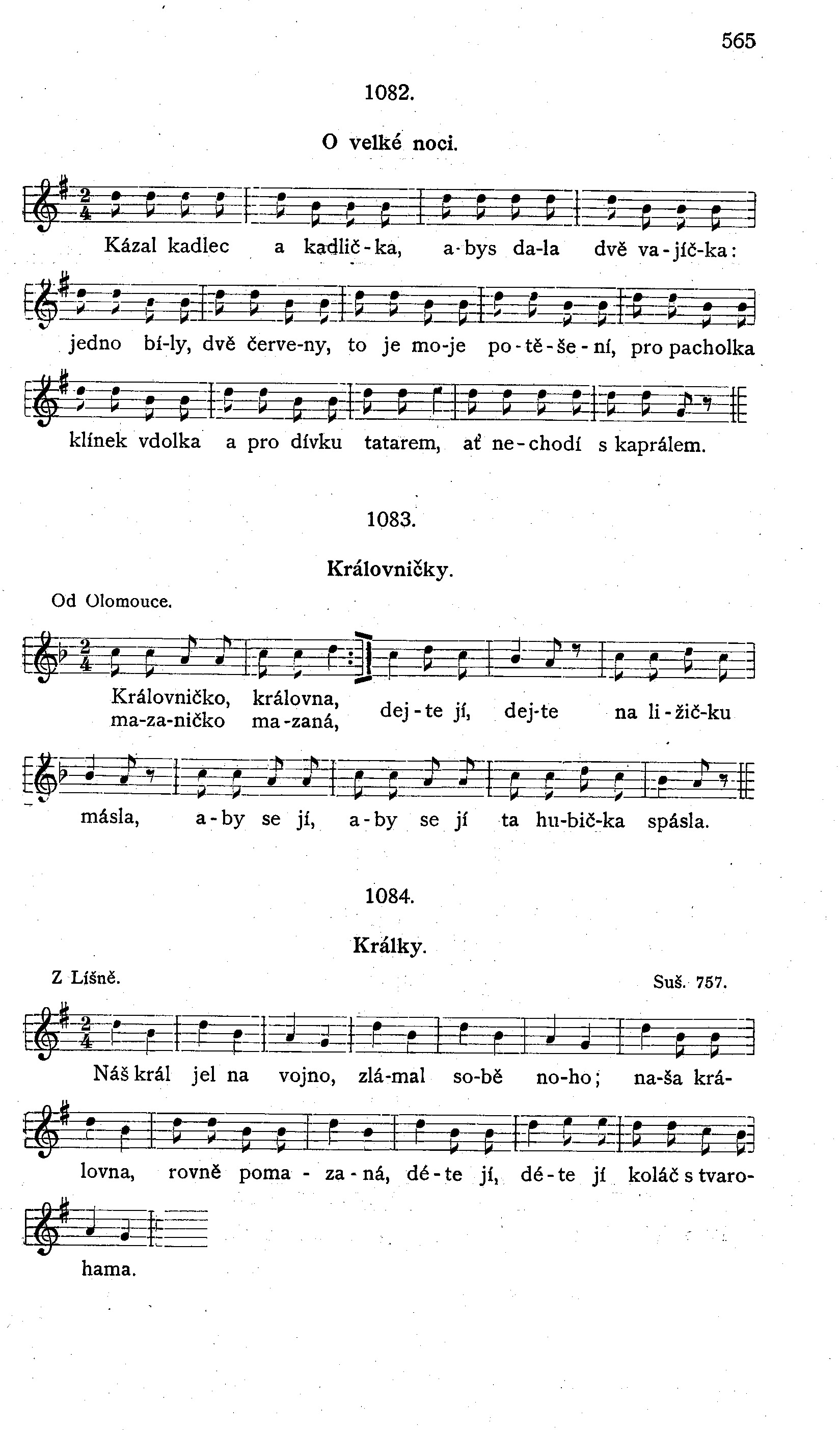 Kázal kadlec a kadlička, abys dala dvě vajíčka: jedno bíly, dvě červeny, to je moje potěšení, pro pacholka klínek vdolka a pro dívku tatarem, ať nechodí s kaprálem.