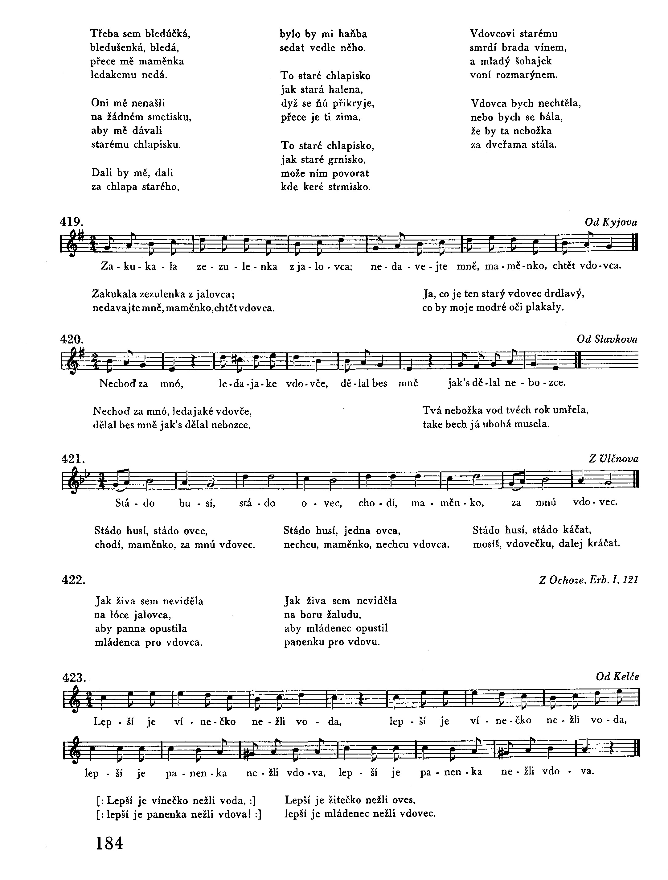 Jak živa sem neviděla na lóce jalovca, aby panna opustila mládenca pro vdovca. Jak živa jsem neviděla na boru žaludu aby mládenec opustil panenku pro vdovu.