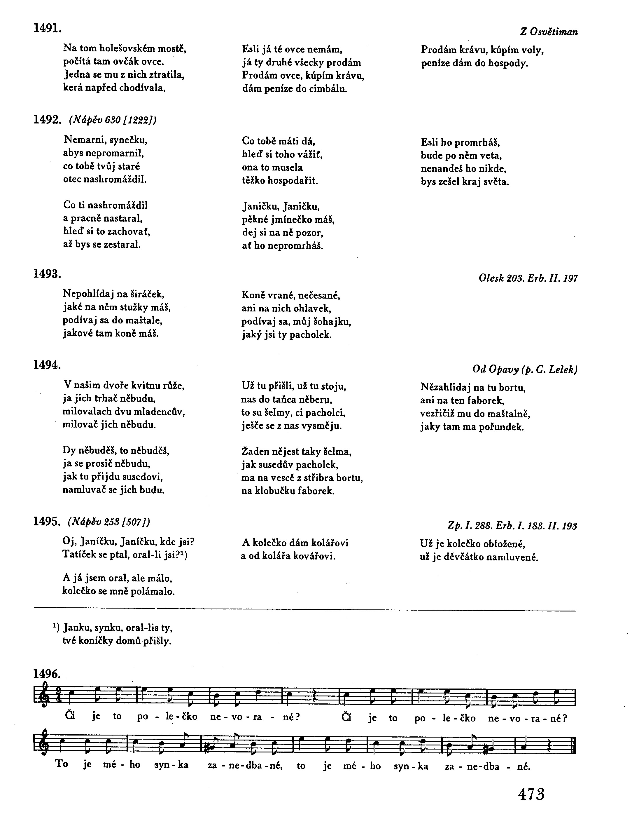 Čí pak je to líha nevoraná? to je mého syna Fabiána. Proč jsi jí, můj synu, nedovoral? „Že se mně na poli pluh polámal.“ Když se ti polámal, dej ho spravit: kterak se mám tebe, synu, zbavit? „Proč pak mne, tatíčku, nerad máte, že vy mne od sebe posíláte? Neposílejte mne, já pudu sám: vsednu na koníčka, budu husar.“